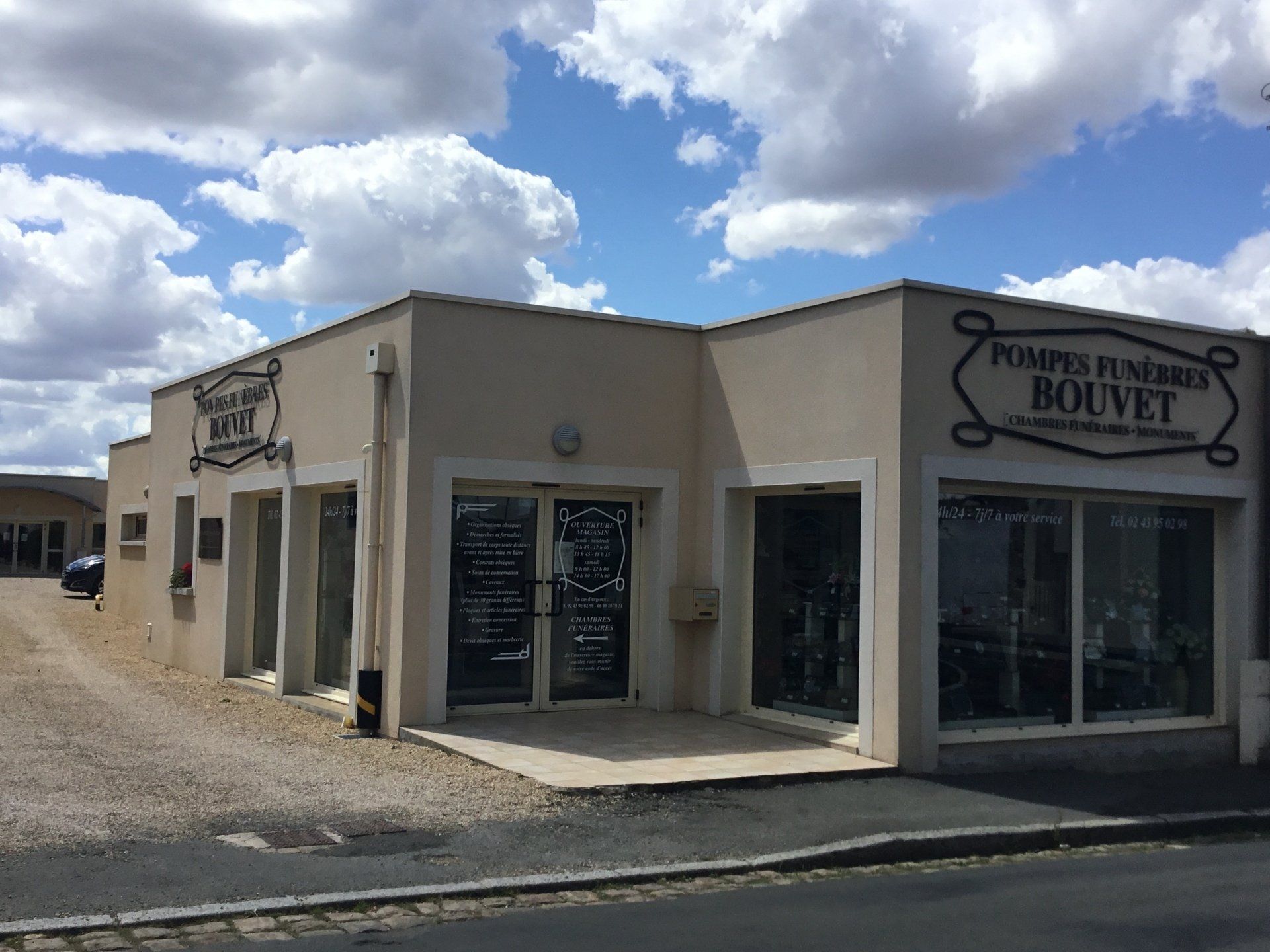 Les Pompes Funèbres Bouvet vous accueillent du lundi au dimanche Rue Saint-Nicolas à Sablé-sur-Sarthe. Nous disposons d'un parking privé afin de stationner facilement.